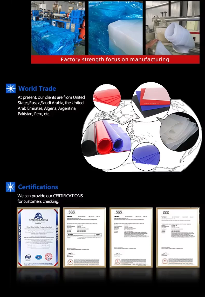 Gas Phase High Heat Elastic 1 Meter Width Vulcanized Odorless 0.5mm to 10mmm Smooth Surface Transparent Silicone Rubber Sheet